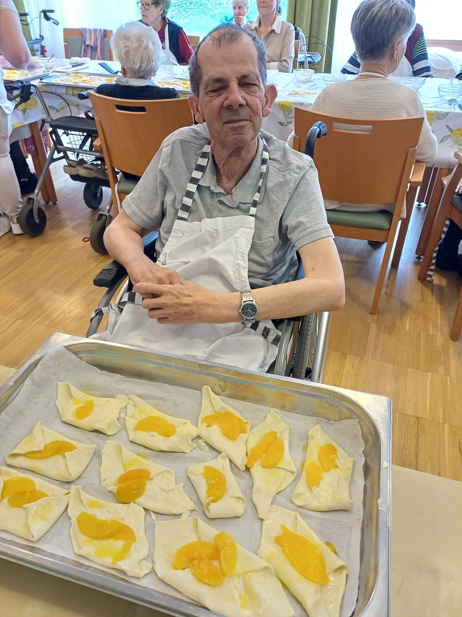 Kürzlich zog ein süßer Duft von frischem Gebäck durch das SeneCura Sozialzentrum Bad St. Leonhard, als die Bewohner:innen süße Spiegeleier zubereiteten. In liebevoller Handarbeit und bestückt mit Blätterteig, eingelegten Pfirsichen und Eier zauberten die Seniorinnen und Senioren eine leckere Nachspeise. In bester Gesellschaft genossen die Bewohner:innen das Beisammensein und das Backen. Nach der Kostprobe der süßen Spiegeleier waren sich alle schnell einig, dass es nicht das letzte Mal war, dass sie diese köstliche Nachspeise backen.
