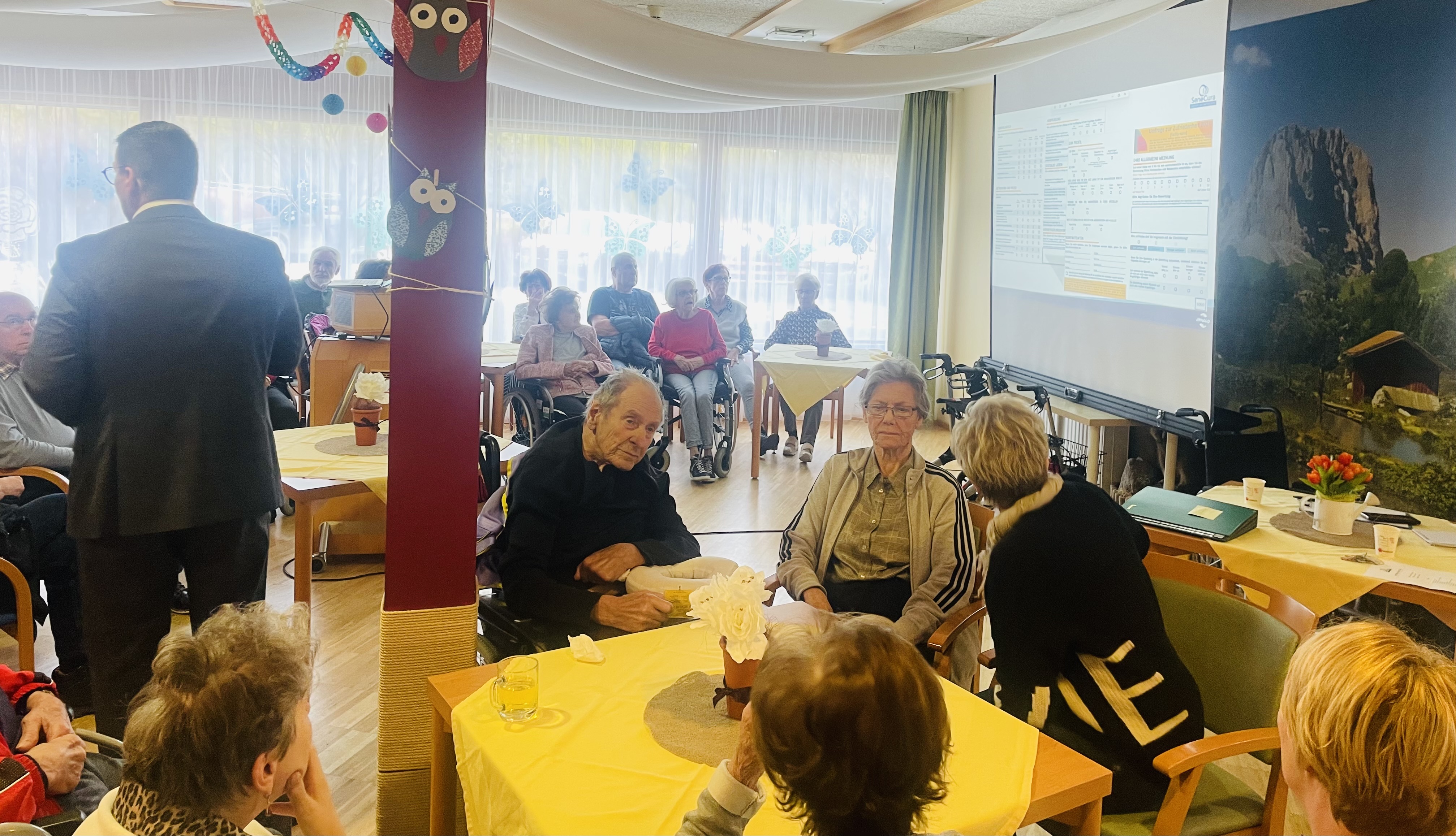 Kürzlich fand im SeneCura Sozialzentrum Bad St. Leonhard der Angehörigennachmittag statt. Im Rahmen der Veranstaltung wurden aktuelle Informationen vorgestellt und im Anschluss besprochen. Diese informative Veranstaltung bot den Angehörigen die Gelegenheit, auf den neusten Stand zu kommen, aktiv am Austausch teilzunehmen und eventuelle Anliegen oder Ideen einzubringen. Anschließend gab es ein gemütliches Beisammensein mit einem leckeren Buffet.