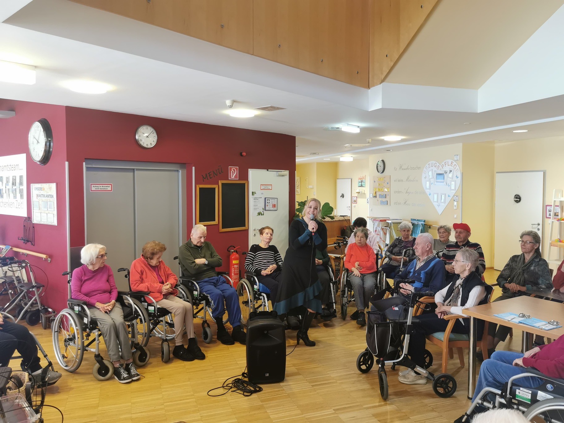 Eine musikalischen Hochgenuss der besonderen Art konnten die Bewohner:innen des SeneCura Sozialzentrums Bad St. Leonhard kürzlich genießen. Die bekannte Sopranistin Iva Schell war zu Gast und hat Stücke aus Musical, Oper und Operette zum Besten gegeben. Nicht nur musikalisch wurden die Zuhörer:innen bestens unterhalten, auch nette Gespräche standen an der Tagesordnung. Viele der Bewohner:innen kennen Iva Schell nicht nur aus den Medien, sondern wohnten früher auch in der Nachbarschaft ihrer Heimat Preitenegg im Lavanttal.