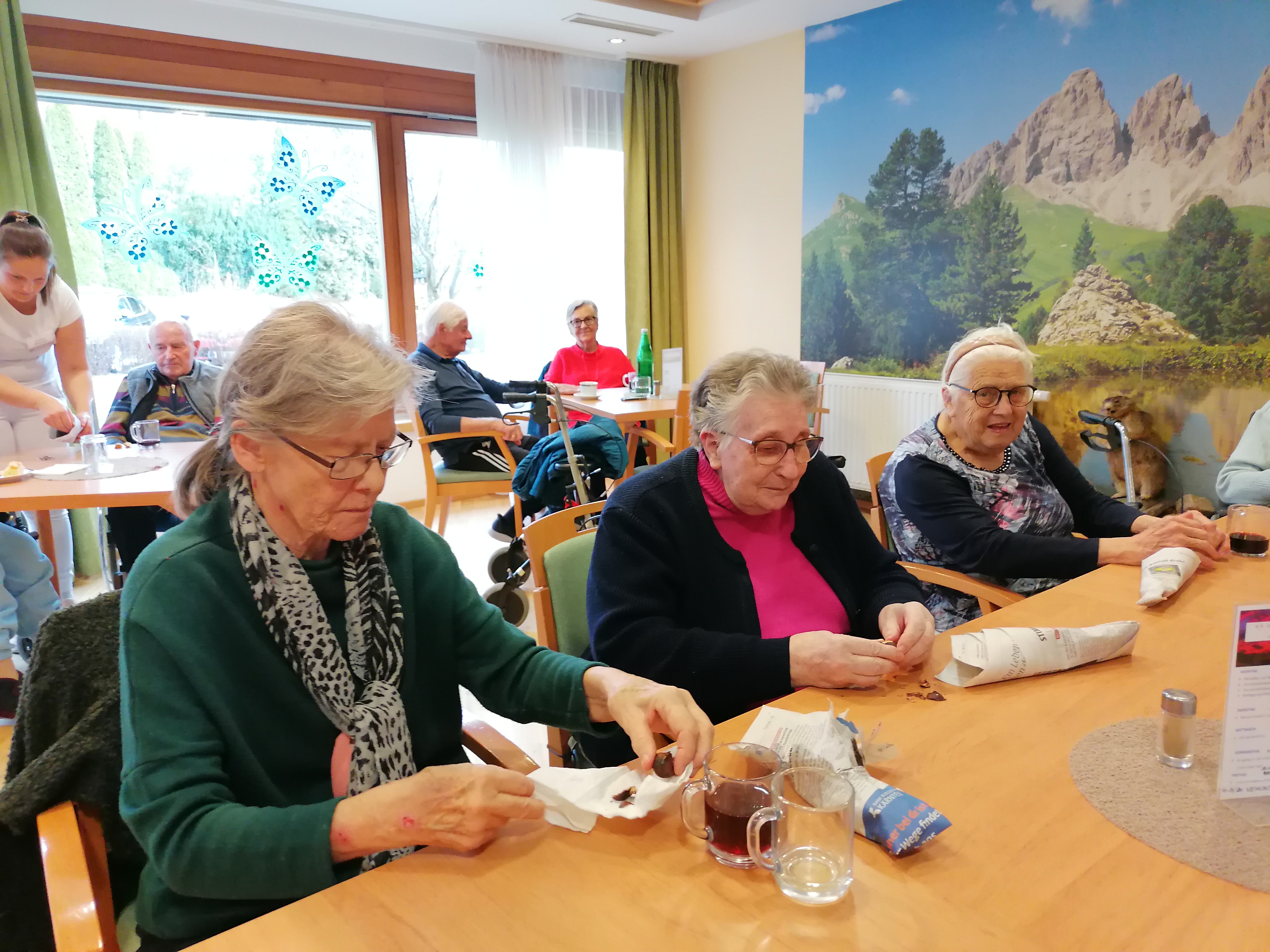 Wenn es draußen kalt wird, wird’s im SeneCura Bad St. Leonhard erst richtig gemütlich – und dieses Mal sogar richtig fröhlich: Unsere Bewohnerinnen und Bewohner durften sich über duftende Maroni und warmen Glühwein freuen, und die Stimmung war einfach herrlich.