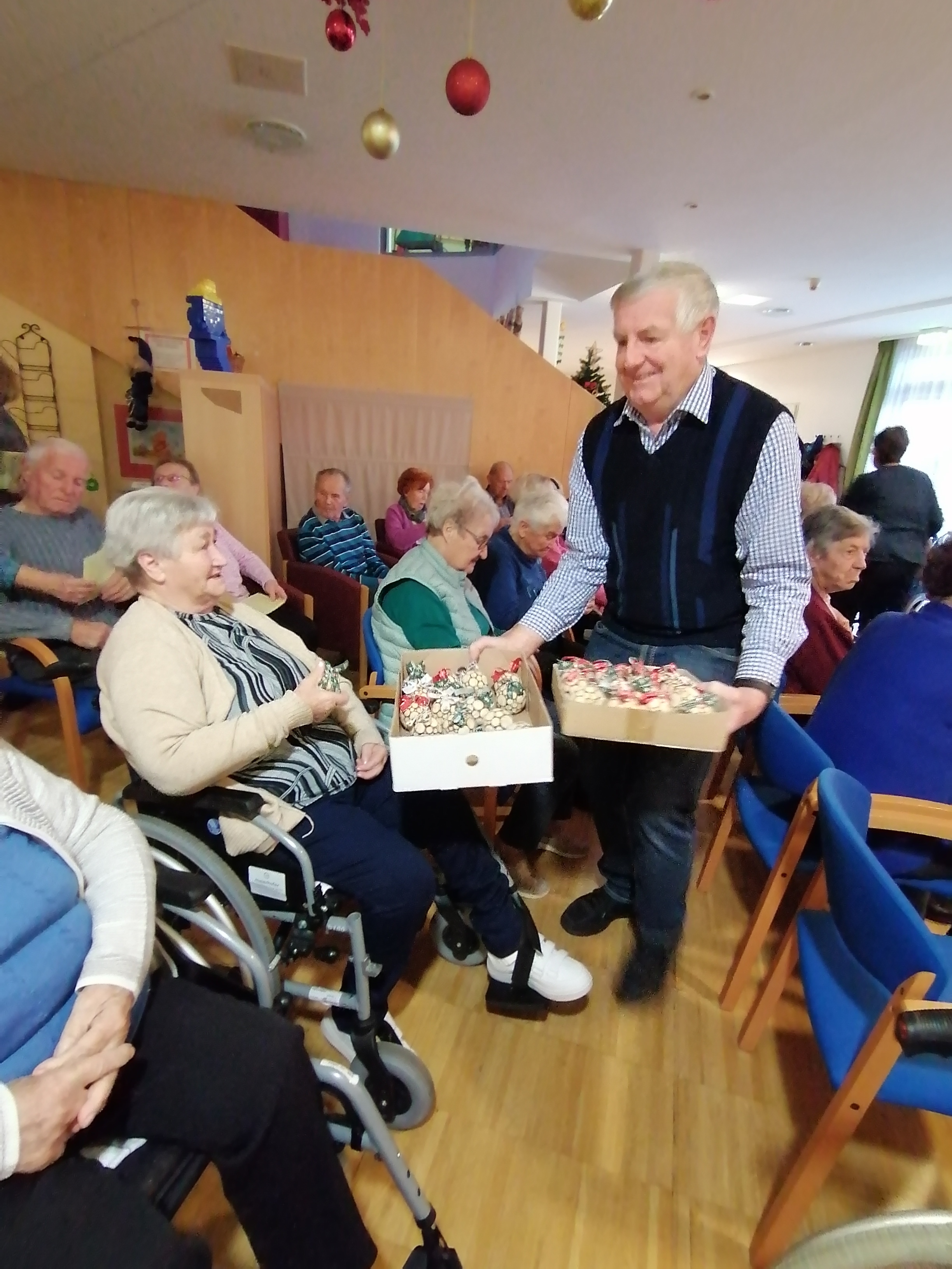 Es gibt Begegnungen, die tief berühren. Eine davon ist jener Moment, wenn Herr Kurda aus Wisperndorf das SeneCura Sozialzentrum Bad St. Leonhard besucht – ruhig, freundlich und mit einer Kiste voller selbstgemachter Kunstwerke aus Holz. Mehrmals im Jahr kommt er zu uns und schenkt jedem einzelnen Bewohner eines seiner liebevoll gefertigten Stücke. Diesmal hat er die Bewohner:innen mit weihnachtlichen Zirbenkugeln beschenkt, über welche sie sich sehr gefreut haben. „Ein herzliches Dankeschön für die schöne Aufmerksamkeiten. Wir haben uns wirklich darüber gefreut.“, so Brigitta Penz, Hausleitung des SeneCura Bad St. Leonhard.